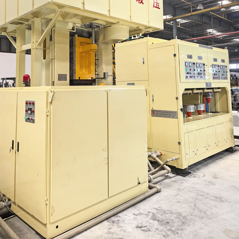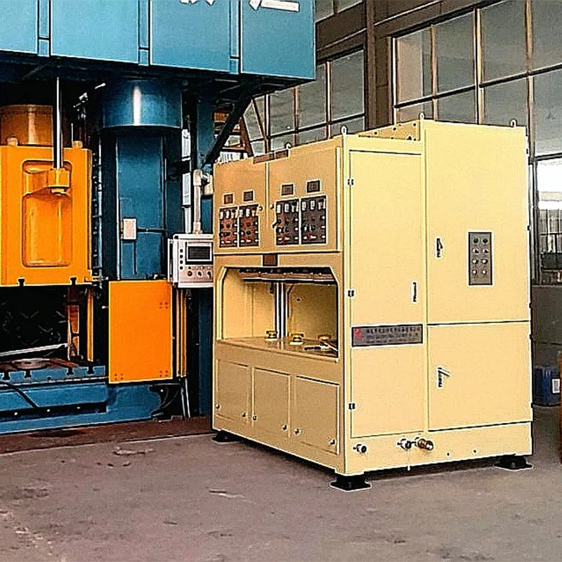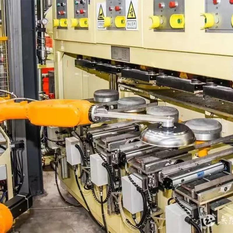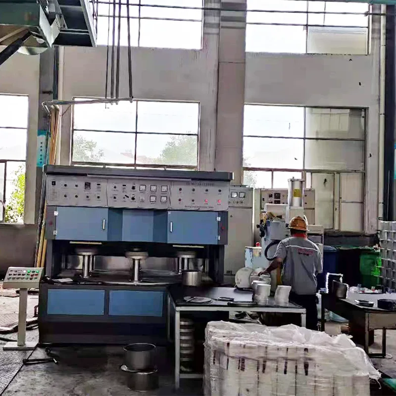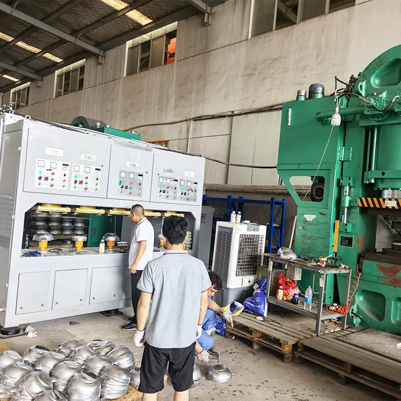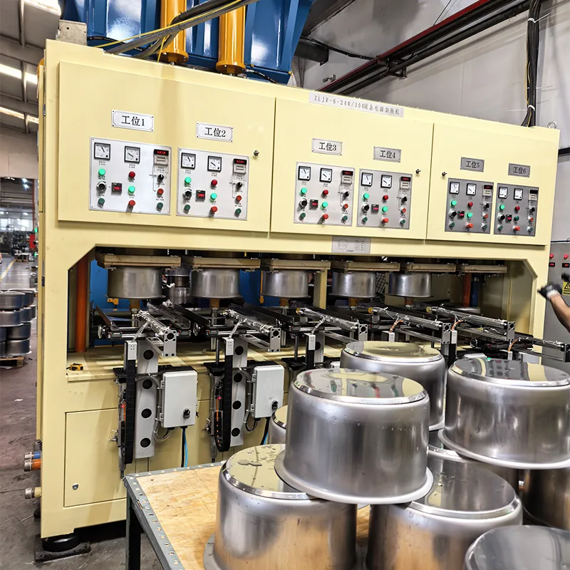 Zanglamaydigan po'latdan yasalgan idishning pastki qoplamasini avtomatlashtirilgan ishlab chiqarish uchun besh stantsiyali inline isitish mashinasi